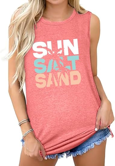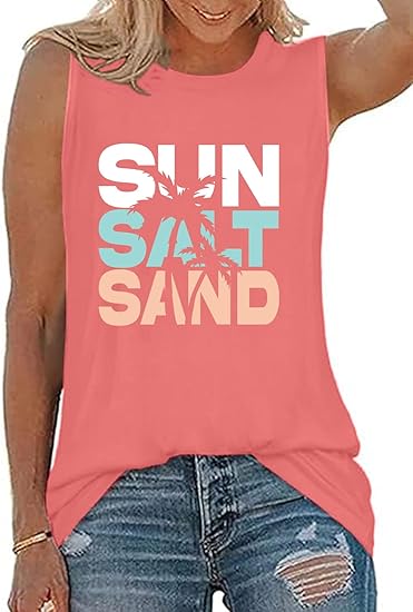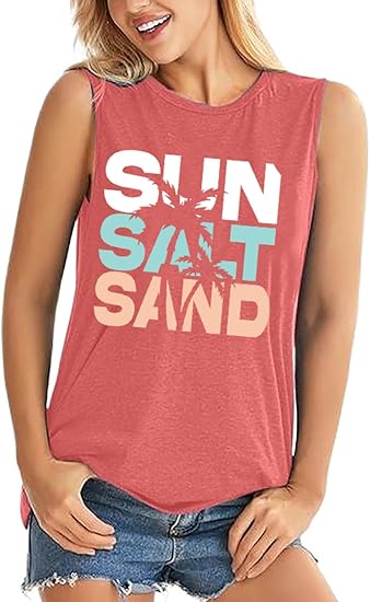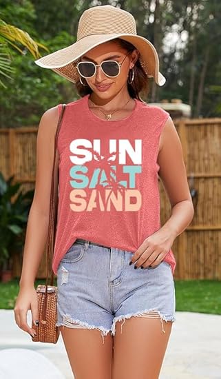 - Tank Top Features - Sun Salt Sand Beach Coconut Tree Print tank Top for Women, Beach Vacation Graphic Casual T Shirt,Vintage Hawaii Style Beach Holiday Tees, Gift Shirt Tee,Casual Short Sleeve Summer Vest Blouse for Womens