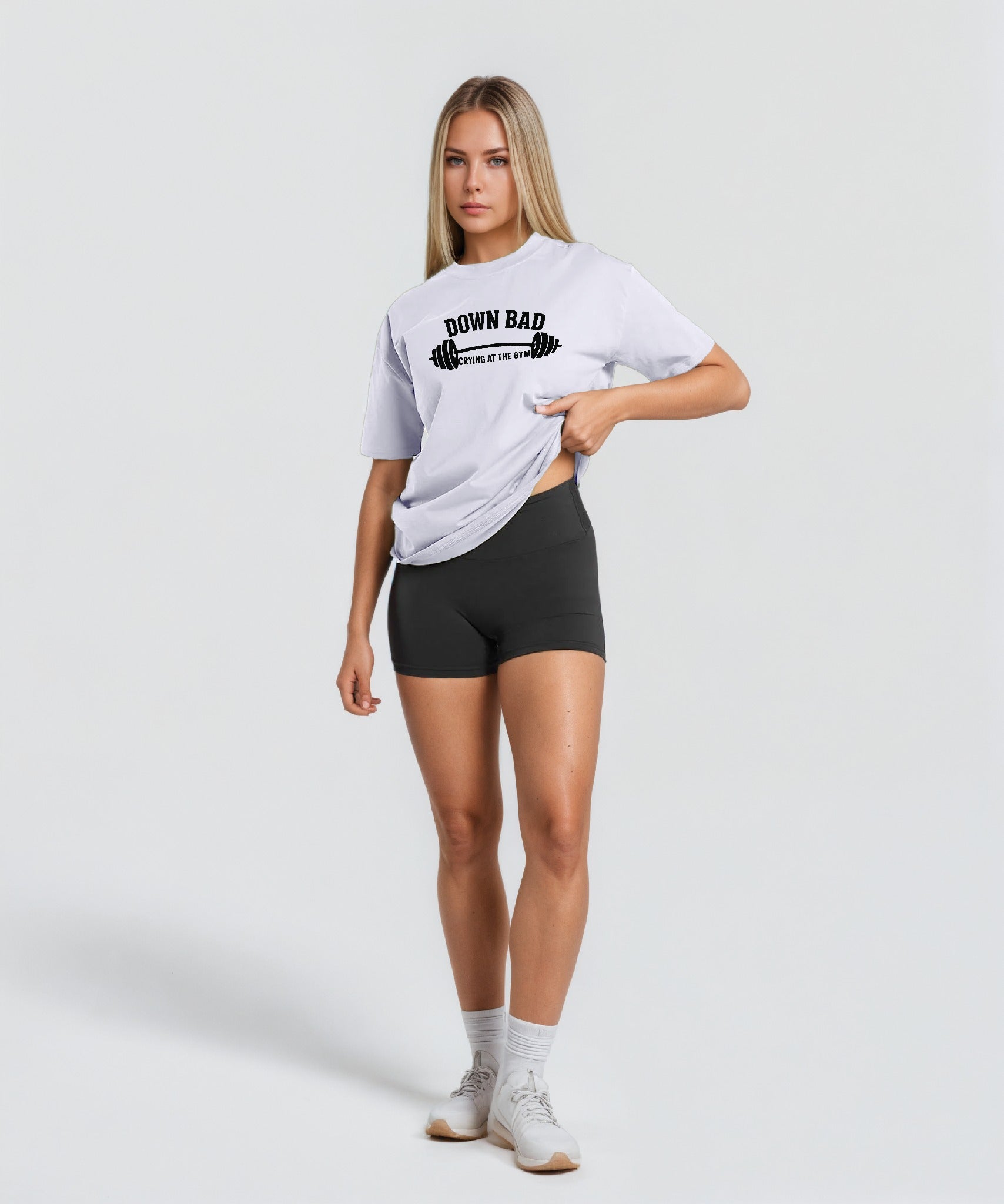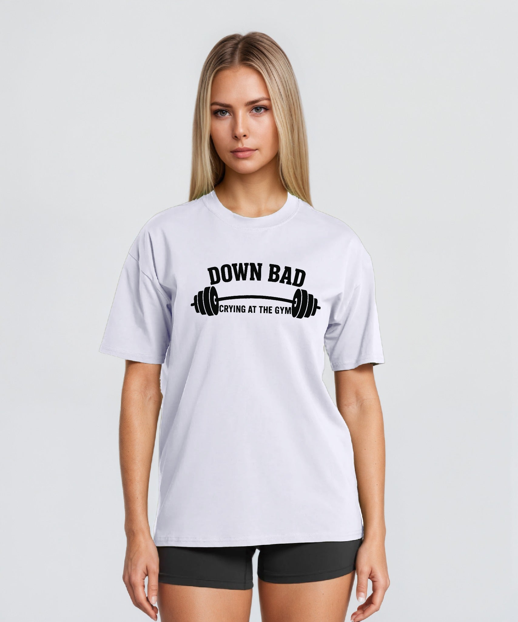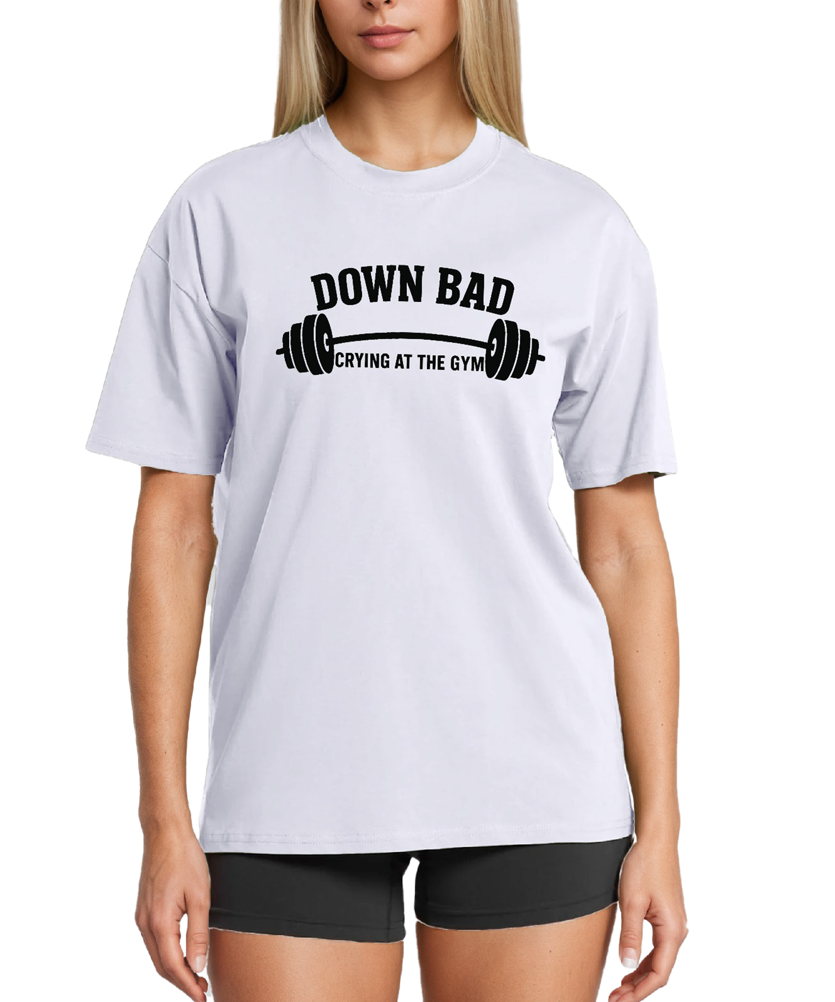 - Instant Gym Mood Booster: "DOWN BAD CRYING AT THE GYM" slogan printed in bold black instantly turns workout struggles into laughs! Designed with gym motivation t shirt humor, perfect for ice-breaking in fitness classes or snapping viral gym selfies.
