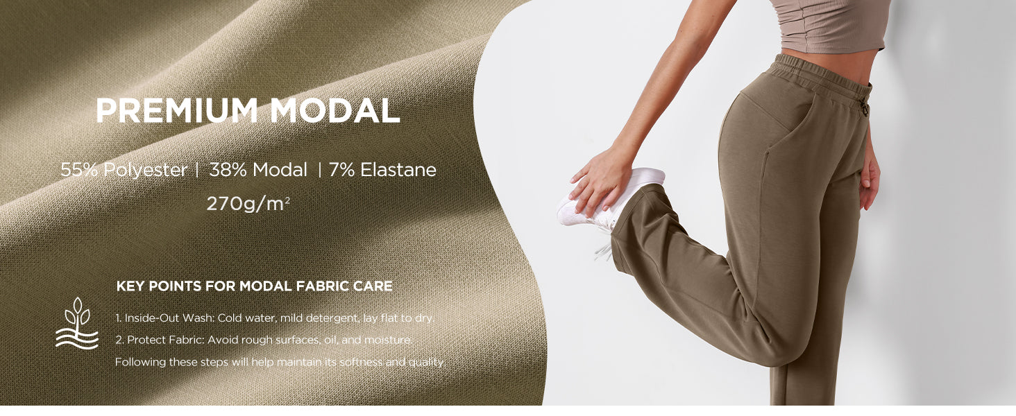 - Modal Soft: Made of ultra soft modal fabric blend with polyester and spandex, 270g/m² medium weight fabric, weightly draped, moisture absorption and wrinkle-resistant, keep the shape of the pants well.